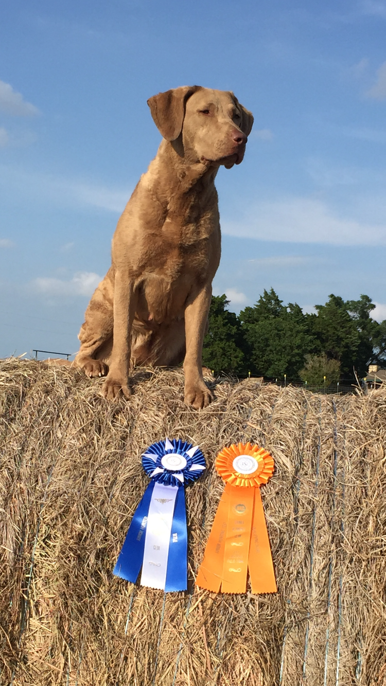 Sapphire went to the 2015 Chesapeake Bay Retriever National Specialty in Wisconsin where she made it to the 2nd round of Best of Breed competiton in a very nice group. She also placed 4th in Brood Bitch competition with her son "Boom" and "Ruby" as her get.