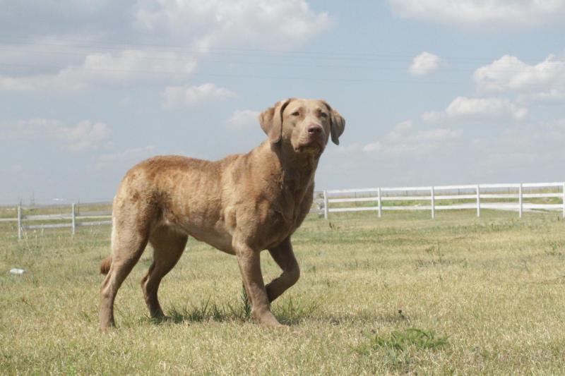 Sapphire was purchased from Dyane Baldwin at Pond Hollow Chesapeakes and is out of Ch Pond Hollow Continental Divide x Ch Rock Point Thief in the Night. She is very birdy, likes to jump and swim, and is eager to please as well as having a great temperament and very nice movement and conformation. She has a fun personality and likes to "roo roo". Sapphire completed her championship title in October 2013!!!