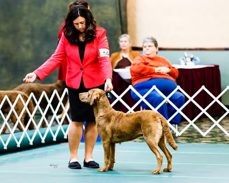 Sapphire went to the 2015 Chesapeake Bay Retriever National Specialty in Wisconsin where she made it to the 2nd round of Best of Breed competiton in a very nice group. She also placed 4th in Brood Bitch competition with her son "Boom" and "Ruby" as her get.