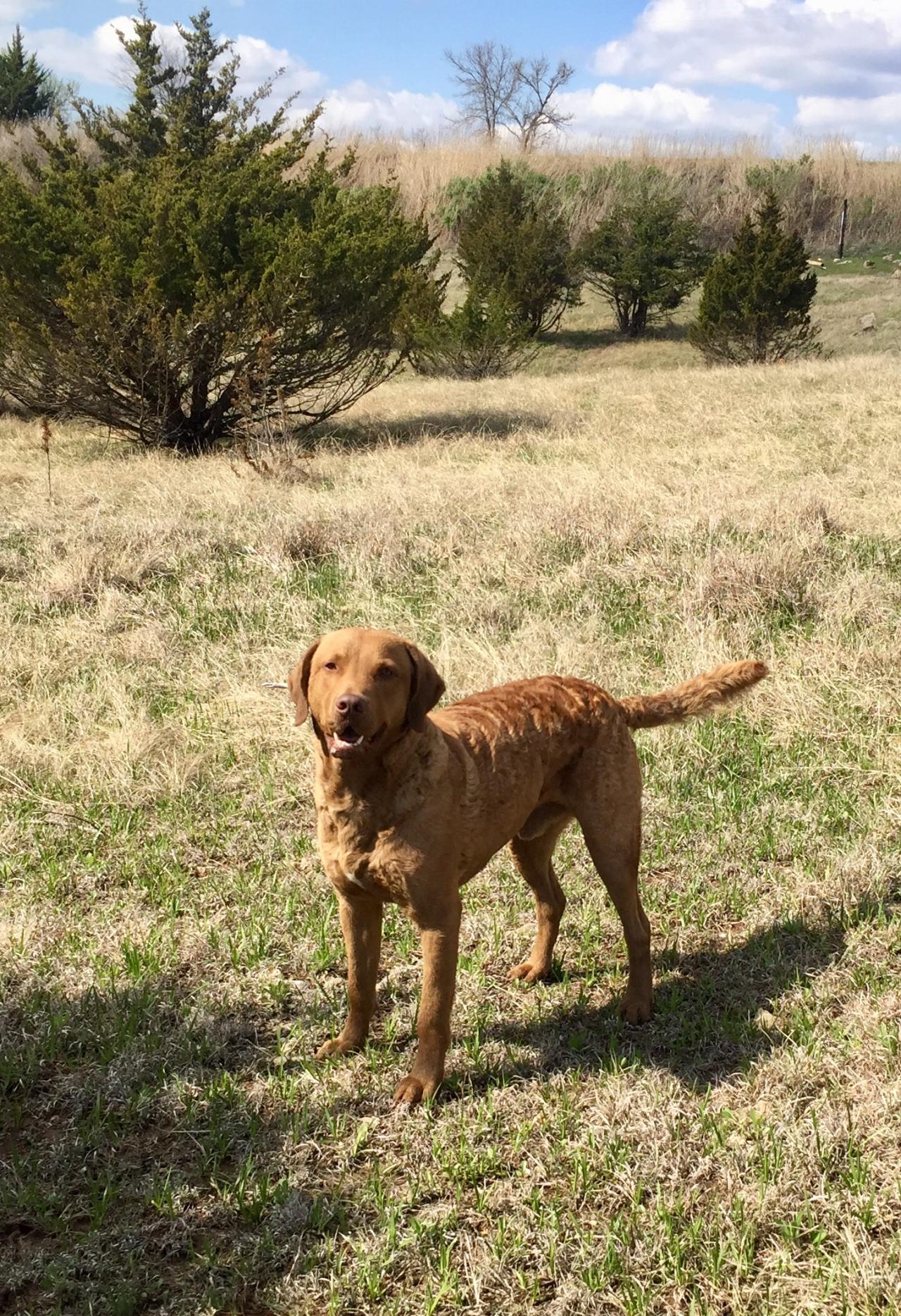 Eli came to us in Nov. 2019. He is a very loving dog that has a lot of natural bird drive. He is currently in training as he did not have alot of training beforehand. Did not take him long to learn to pick up a goose and will have a lot more experience by this fall in time for hunting season.